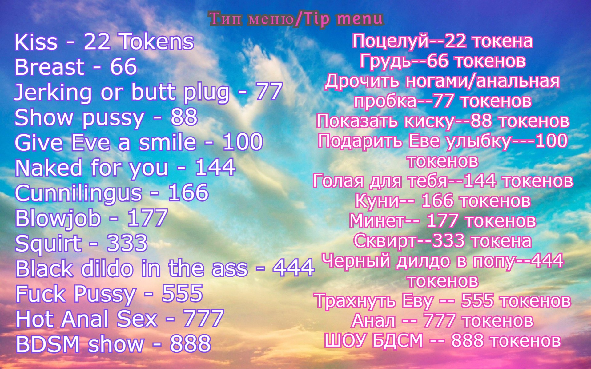--- Requests without tokens-BAN - - - LOVENS from 1 token. My favorite vibe is 567. +LOVE♥ + SUBSCRIPTION♥